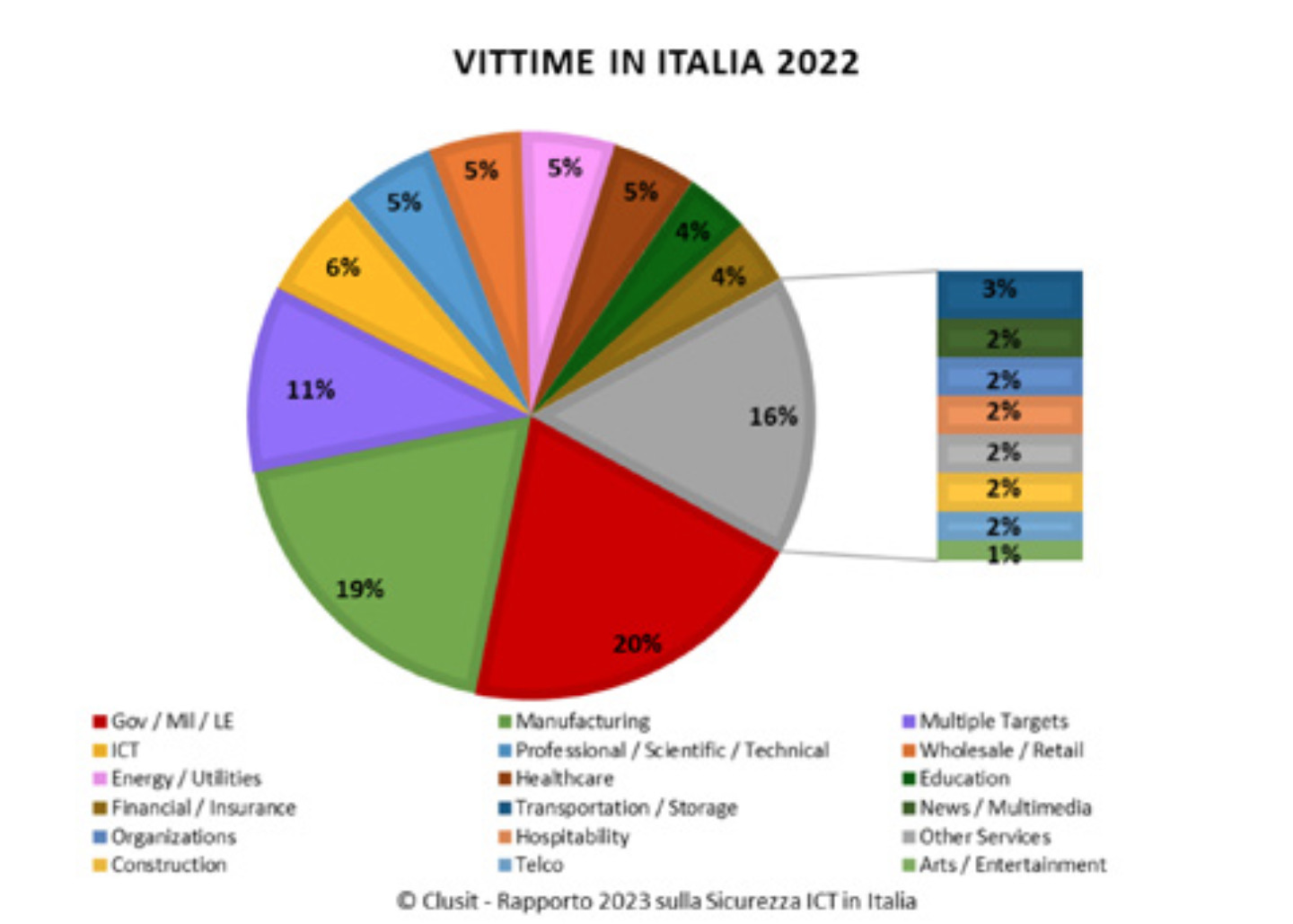 Il 20% degli attacchi informatici sferrati in Italia nel 2022 è stato infatti indirizzato verso le organizzazioni di tipo governativo.