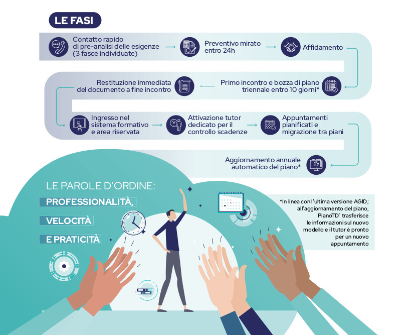 Ogni anno infatti, quando AGID rilascerà il consueto aggiornamento del Piano Triennale, il sistema PianoTD® trasferirà automaticamente le informazioni sul nuovo modello di piano e un tutor sarà pronto ad organizzare l’appuntamento per discuterlo insieme.