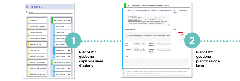 Il nostro software PianoTD® permette di creare, gestire e monitorare il Piano Triennale per l’Informatica del tuo ente, partendo da un modello standard appositamente creato.